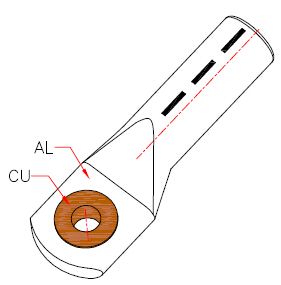 DTL-3 Bimetallic Lug is suitable for screwing non-tension aluminum connections using Cu-washers in humid areas and for pre-rounded sector shaped conductors.