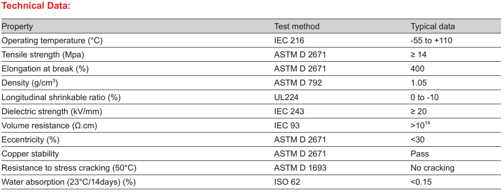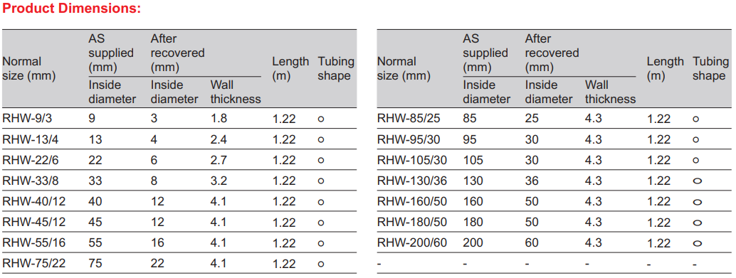 RHW is have properties of excellent insulating, environmental sealing, and resistant to impact and abrasion for applications to seal and protect electrical and communication connections, providing excellent mechanical protection to cable joints and terminations, 3:1 shrink ration allows it easily fit over irregular shape and large connectors