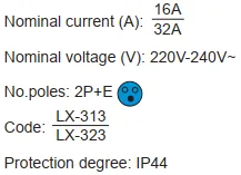 LX-313 LX-323 IP44 Panel Mounted Industrial Socket