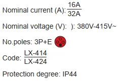 LX-415 LX-425 IP44 Panel Mounted Industrial Socket
