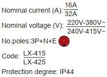 LX-415 LX-425 IP44 Panel Mounted Industrial Socket