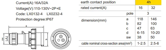 LX0132-4 LX0232-4 IP67 Industrial Plug