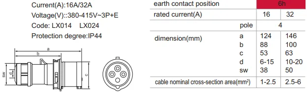 LX014 LX024 IP44 Industrial Plug