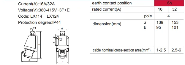 LX114 LX124 IP44 Industrial Socket