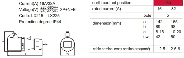 LX215 LX225 IP44 Pin And Sleeve Connector
