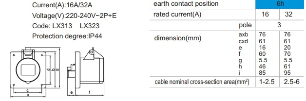 LX313 LX323 IP44 Panel Mounted Industrial Socket