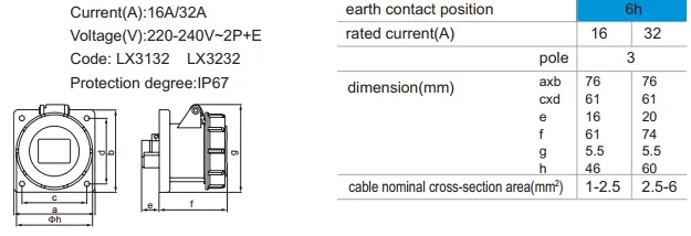 LX3132 LX3232 IP67 Panel Mounted Industrial Socket