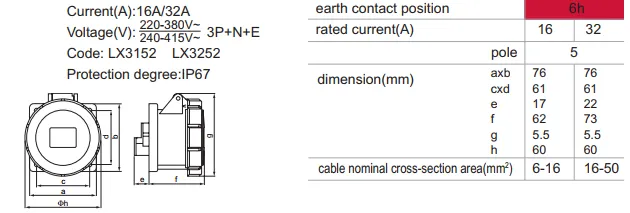 LX3152 LX3252 IP67 Panel Mounted Industrial Socket