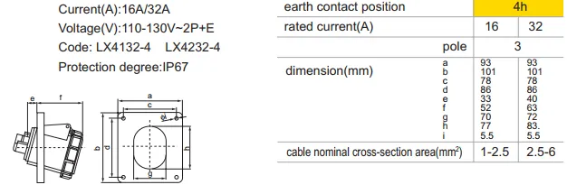 LX4132 LX4232 IP67 Panel Mounted Industrial Socket