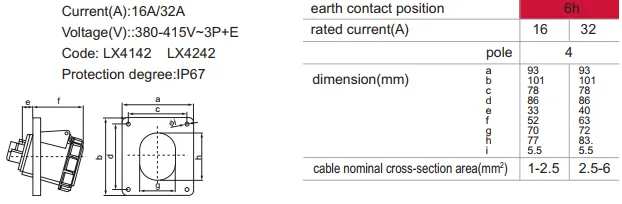 LX-413-4 LX-423-4 IP44 Panel Mounted Industrial Socket