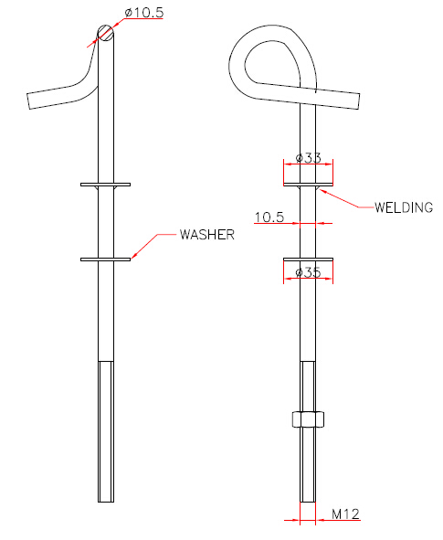 pigtail bolt with square plate