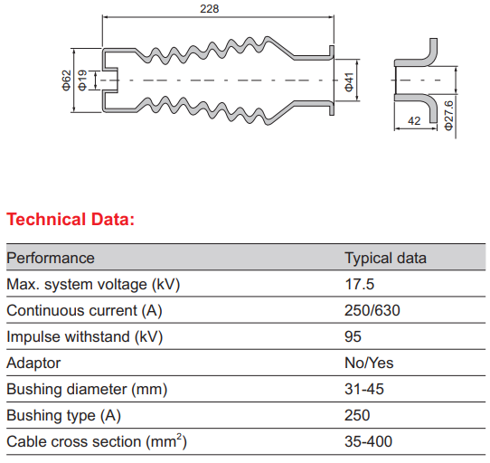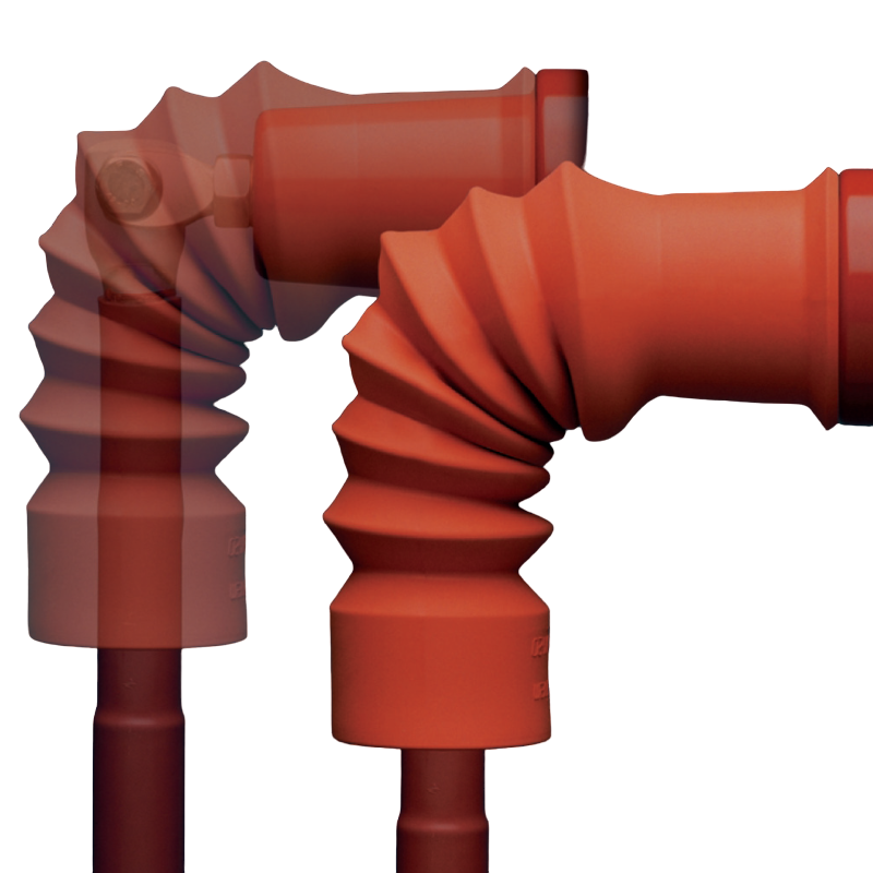RCAB elastomeric insulating boots are moulded parts which fit over the connection between the cable lug and the inline or right-angled equipment bushing to improve phase-to-phase and phase-to-ground insulation. They are used in switchgear and transformer cable boxes where the air clearances are insufficient for normal operation, or to protect against flashover due to rodents or high humidity.